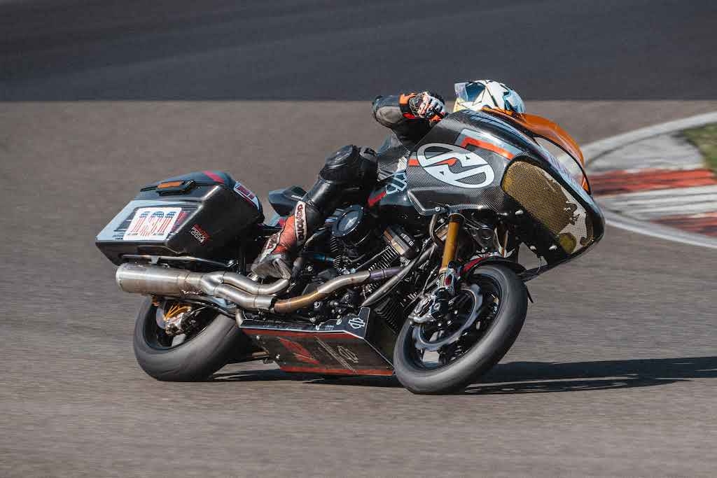 Ein Bagger auf Speed. Pure Power, amerikanischer Stil! Eine speziell umgebaute Harley-Davidson "Bagger" jagt mit Höchstgeschwindigkeit über die Rennstrecke. Wenn diese V-Twins brüllen, ist Gänsehaut garantiert!